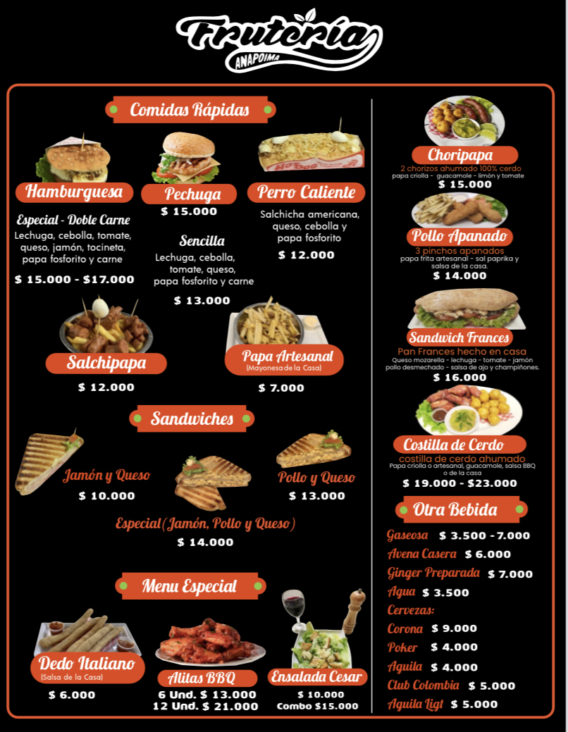 Wrapping up my look at the menu at Fruteria De Anapoima & Pizzeria Vichenzo (Cra. 2 #5-24, Anapoima, Cundinamarca, Colombia), it’s clear this place leans into straightforward, comforting pizza choices with a few size options to fit different appetites. If you’re eating solo or want something quick, the personal-sized pizzas-Vichenzo Personal, Pollo y Champiñones Personal, and Hawaiana Personal-are easy picks, each offering a distinct direction from house-style simplicity to the savory combo of chicken and mushrooms, or the classic sweet-and-salty Hawaiian profile. For sharing (or for a heartier meal), the medium options like Vichenzo Mediana, Pollo y Champiñón Mediana, and Hawaiana Mediana feel like the natural upgrade. While specific prices weren’t provided in the menu details here, the structure itself is nicely uncomplicated: choose your flavor, choose your size, and you’re set-making it a convenient stop when you want reliable pizza without overthinking the order.